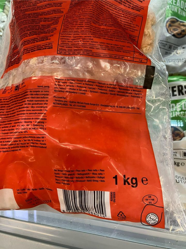 halal certifikácia na obale. Mrazené kuracie nugetky, zakúpené v Tescu. Má ich aj Kaufland, alebo eshop Lunys (ten má v ponuke viacero halal cesrtifikovaných produktov od tejto značky)