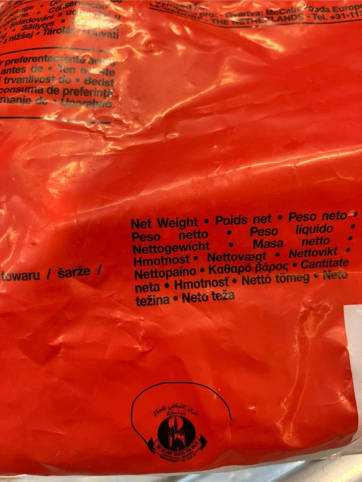 halal certifikát na obale. Zakúpené v menšom českom obchode.