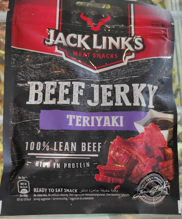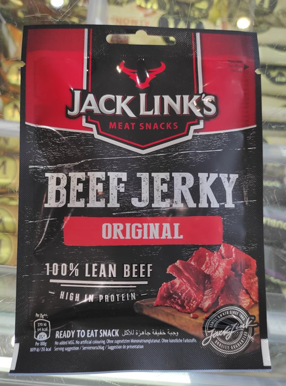 hovädzie sušené mäso, Jack Links, halal certifikát na obale. Zakúpené na čerpacej stanici OMV.