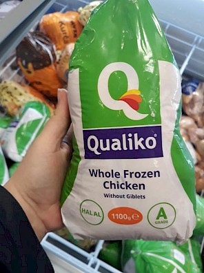 halal certifikácia na obale. 1kg mrazené kurča, bez vnútorností, zakúpené v Metre. Majú ho tiež v ponuke v Malackách: Lotus minimarket na Bernolákovej 22. V Českej republike ho majú v Makru a v Jip, aj v eshope Lunys.