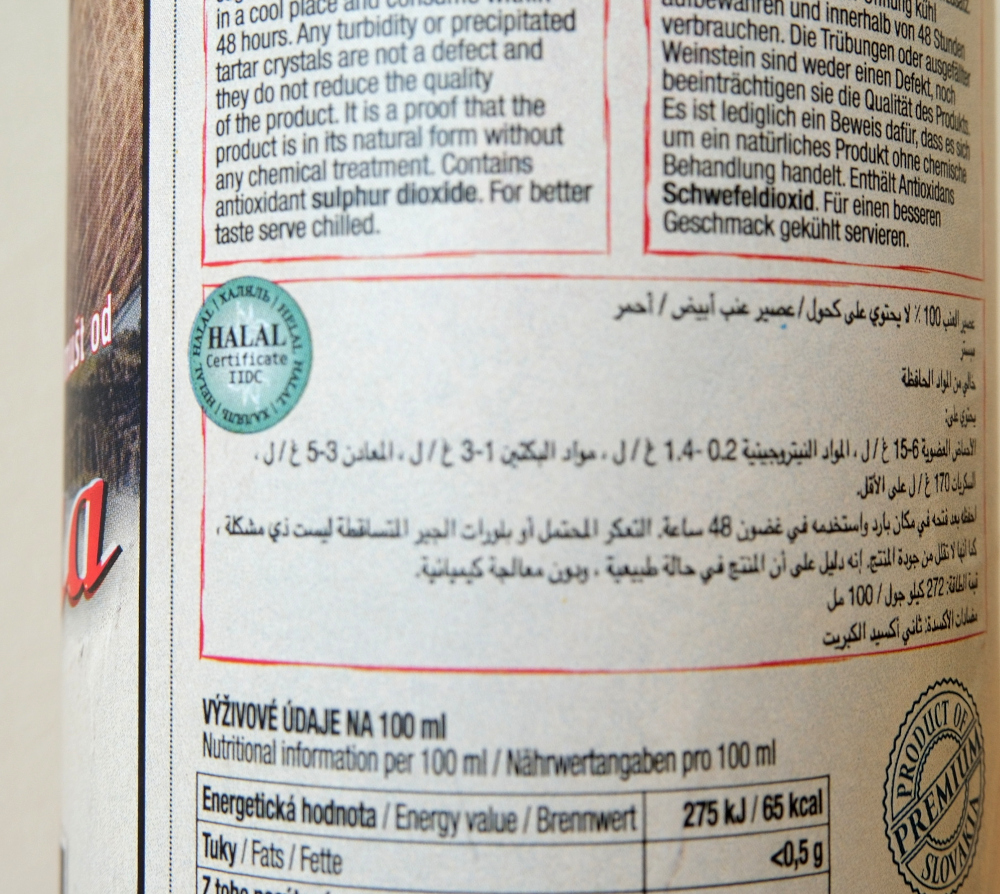 Nápoj z červeného hrozna, 100% hroznová šťava, bez alkoholu, s halal certifikátom na obale. Vhodná pri nedostatku železa v organizme, pre dojčiace ženy (na zvýšenie tvorby mlieka) alebo len tak pre chuť (je poriadne sladká).